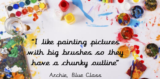 Within the Early Years Foundation Stage, all pupils are taught art and design through expressive arts and design where they have regular opportunities to explore and experiment with a variety of materials, tools and techniques. Children enjoy experimenting with colour, design, texture, form and function through both adult led inputs and continuous provision opportunities. These skills develop as they become more confident throughout the year, accessing these resources independently.