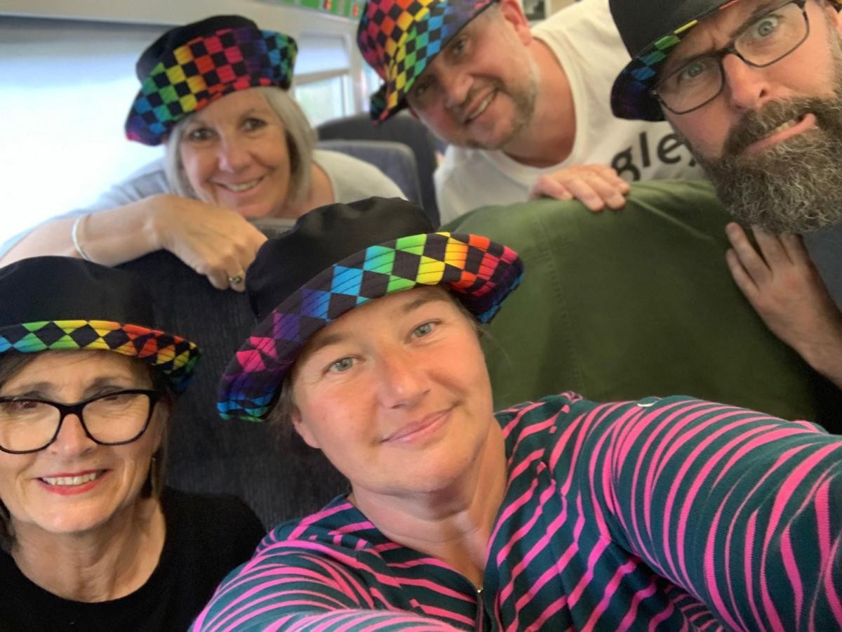 All hats safely on board the train home. The train left on time and if there are no hold ups we will see you all at 7.23pm this evening. We will only post again if there is any change to this.