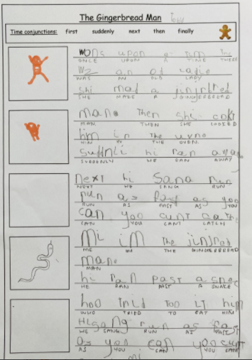 The teacher will provide the children with a ‘hook’ to create an engaging start with a creative context. These opportunities will enable the children to become familiar with the patterns and language of the text. Each class will be supported visually with a text map and physical movements to help children recall the story/non-fiction piece. This gives children the chance to hear and say the text before writing anything down. This stage will involve exploring the structure of the text through sequencing, ‘boxing up’, analysing features and exploring vocabulary.