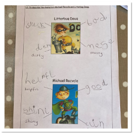 Children imitate the text by using a combination of actions and words. This is followed by shared writing to show how to craft their writing. This gives the children an opportunity to ‘magpie’ ideas and vocabulary to use in their own writing. This leads to each child developing their own special writers ‘voice’.